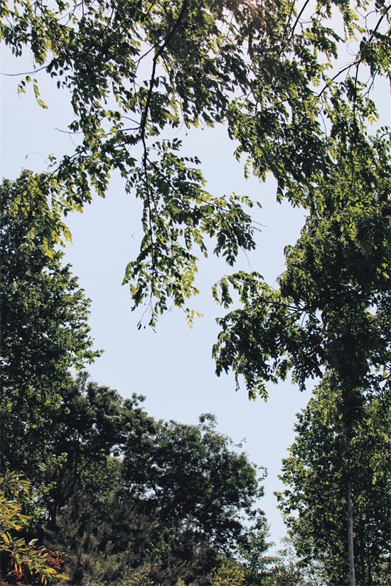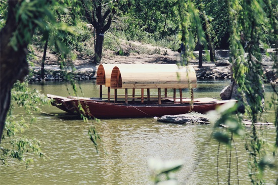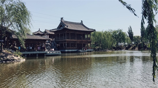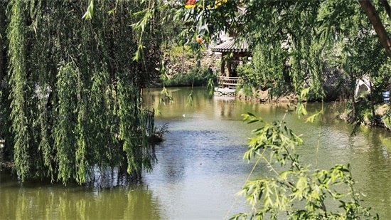 下了山,沿路西行,豁然开朗,清风阵阵,垂柳映影。