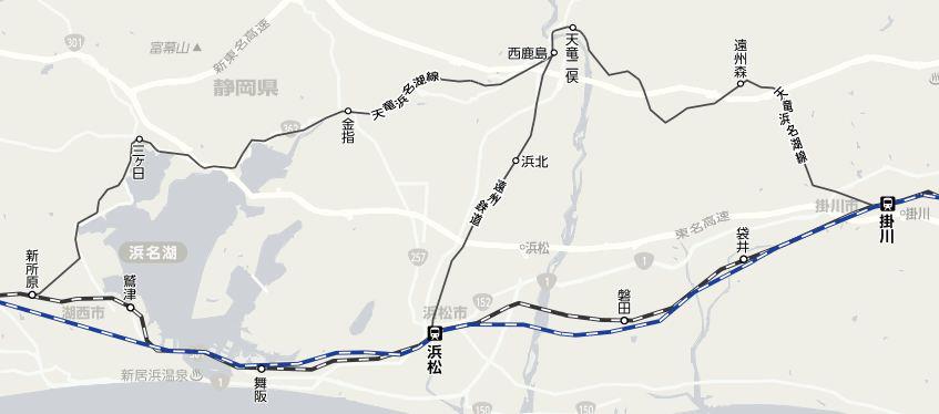 话不多说,大伙可以先看一下远洲线和天滨线距离比奈有多远,我们以远洲线的起点新浜松站为例。