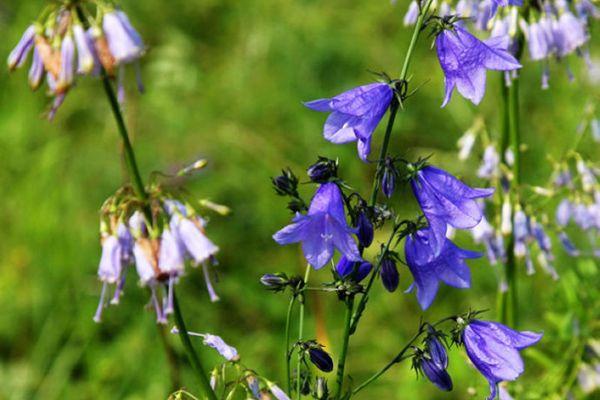 沙参(Adenophora strictaMiq. ),别名南沙参、泡参、泡沙参、白参、知母、羊乳、羊婆奶、铃儿草、虎须等,桔梗科沙参属多年生草本植物,高可达1米,7-8月开花,我国多省区均有分布。根胡萝卜状,可入药,无毒,甘而微苦,有滋补、祛寒热、清肺止咳,也有治疗心脾痛、头痛、妇女白带之效。