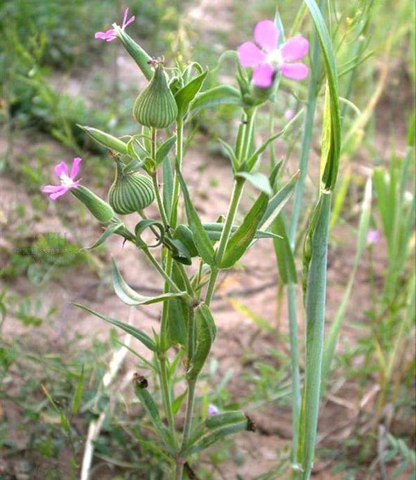 麦瓶草(Silene conoideaL),别名净瓶、香炉草、米瓦罐、梅花瓶、面条菜(幼苗)、广皮菜、瓢咀、甜甜菜、麦石榴、油瓶菜、羊蹄棵、红不英菜、胡炳菜、麦黄菜、灯笼草、灯笼泡、瓶罐花。分布于华北、西北、西南及长江流域。具有养阴,清热,止血,调经之功效。常用于吐血,衄血,虚痨咳嗽,咯血,尿血,月经不调。幼苗在黄河中下游地区被称为面条菜,深受老百姓喜爱。