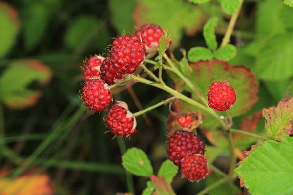 山莓(Rubus corchorifoliusL. f.),又名树莓、山抛子、牛奶泡、撒秧泡,三月泡、四月 泡、龙船泡,大麦泡、泡儿刺,刺葫芦、馒头菠、高脚波等,直立灌木,高1-3米,花期2-3月,果期4-6月。具有涩精益肾助阳明目、醒酒止渴、化痰解毒之功效,主治肾虚、遗精、醉酒、丹毒等症。叶性微苦,解毒、消肿、敛疮等、咽喉肿痛、多发性脓肿、乳腺炎等症。