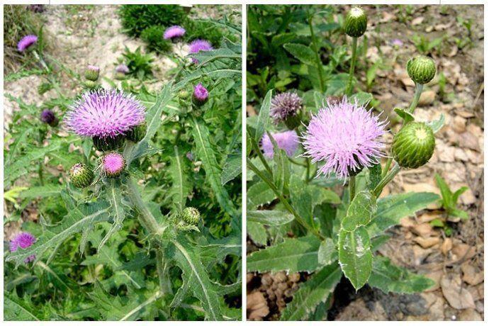 蓟[jì](左为大蓟,右为小蓟,从叶子可以看到区别)↑