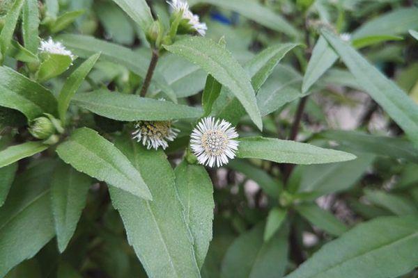 鳢肠(Eclipta prostrata)是菊科鳢肠属的植物。分布于田边或路旁、河边以及中国大陆的全国各地等地。常见于田梗,沟溪边湿地。全草药用,能收敛、止血、补肝肾之功效。外用治疗跖疣。