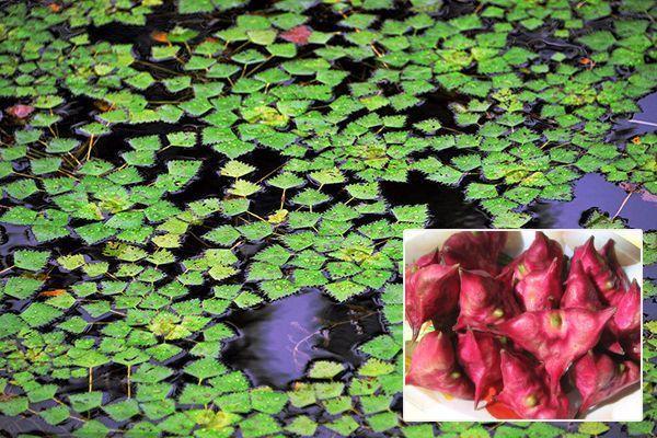 菱角(Trapa bispinosaRoxb.)又称芰、风菱、乌菱、菱角、水栗、菱实、芰实、腰菱,味甘、凉、无毒,是一年生草本水生植物菱的果实,菱角皮脆肉美,蒸煮后剥壳食用,亦可熬粥食。菱角含有丰富的蛋白质、不饱和脂肪酸及多种维生素和微量元素。具有利尿通乳,止渴,解酒毒的功效。原产欧洲,广布于中国南方(河南淮河以南区域野生较多)。
