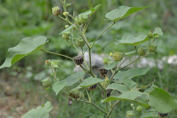 苘麻(Abutilon theophrastiMedicus),别名椿麻、塘麻、青麻、白麻、车轮草等,是一年生亚灌木草本,花期7-8月,黄色花,蒴果半球形,种子肾形。除青藏高原外,我国其他各省区均有分布,此外越南、印度、日本以及欧洲、北美洲等地区也有,茎皮纤维可用于编织麻袋、搓绳索、编麻鞋等纺织材料。种子含油量约15-16%,供制皂、油漆和工业用润滑油;全草可作药用:种子(苘麻子)清热、利湿、解毒,用于角膜云翳,痢疾,痈肿; 根(苘麻根)用于小便淋痛,痢疾。 全草解毒,祛风,用于痈疽疮毒,痢疾,中耳炎,耳鸣,耳聋,关节酸痛等。