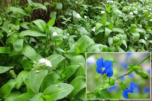鸭跖草(Commelina communis),别名碧竹子、翠蝴蝶、淡竹叶等,属一年生披散草本。产云南、四川、甘肃以东的南北各省区,越南、日韩、俄罗斯远东及北美也有分布。
