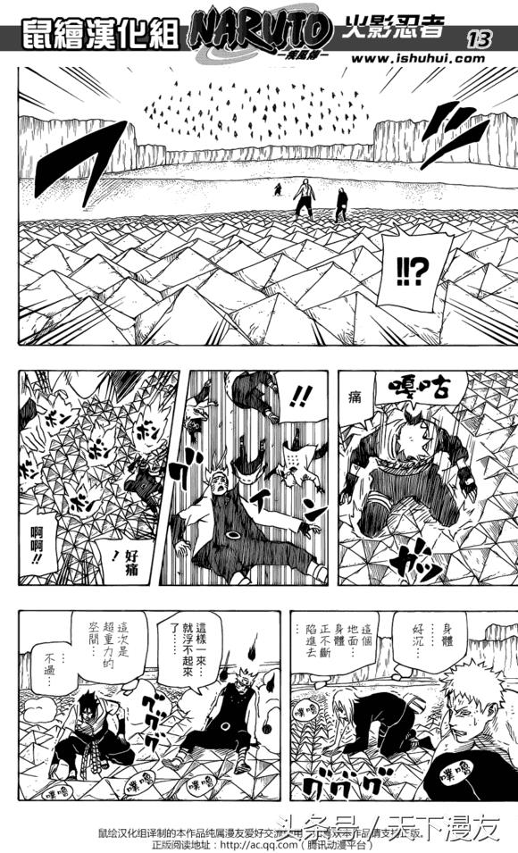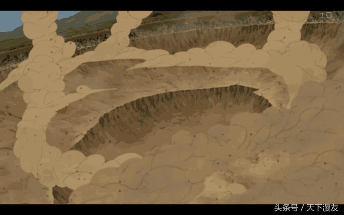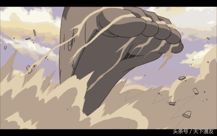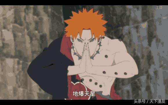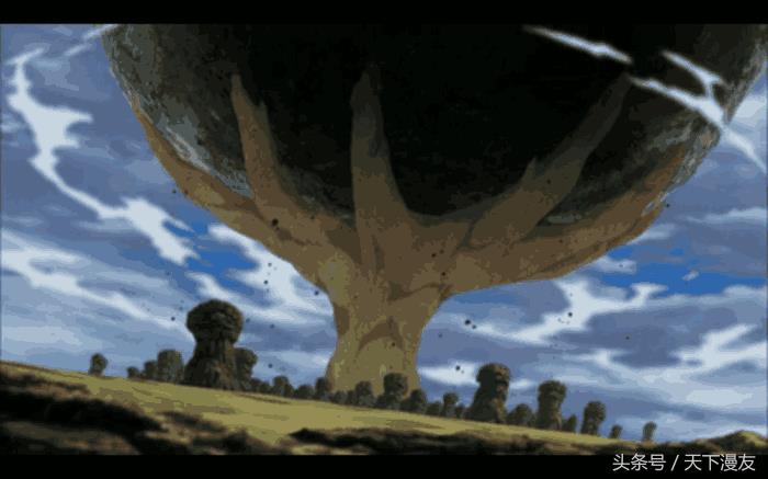 斑开启双面须佐后与之同时结不同的印,召唤出一块直径15km,横径10km的巨大陨石垂直坠落砸向地面,将下方半径约7.5km内的范围大地碾压为废墟。此术若是单挑则大材小用,但在以寡敌众时可以起到无可比拟的震撼效果,受术范围内的普通忍者基本无法防御,要么用时空间忍术躲过,要么中术后以某种手段复活。斑对忍者联军使用后,在两个影级全力的防御下,才勉强挡下了一颗陨石,而第二颗甚至连影级也束手无策,导致忍者联军伤亡惨重,可以说是目前火影里看到过的最强物理攻击。