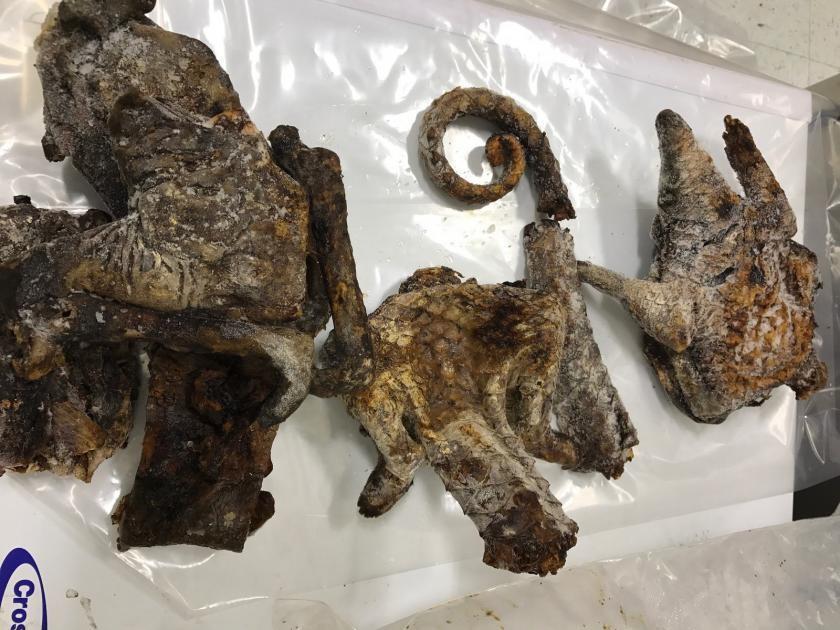 几百上千公斤被缴获的鳞片,都是活生生从穿山甲身上拔下来的,一堆堆鳞片就代表着无数只穿山甲被剥皮放血、走私贩卖。