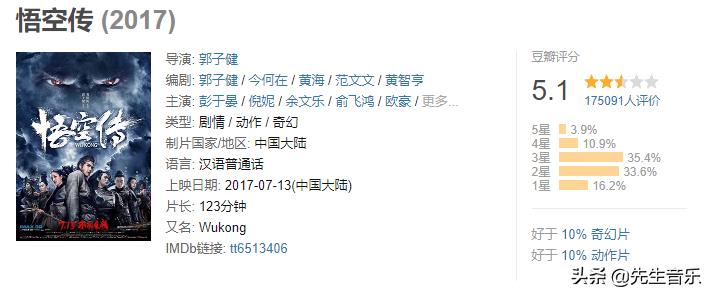 17年上映了《悟空传》,抽空看来一遍。豆瓣评分5.1,口碑不是很好。