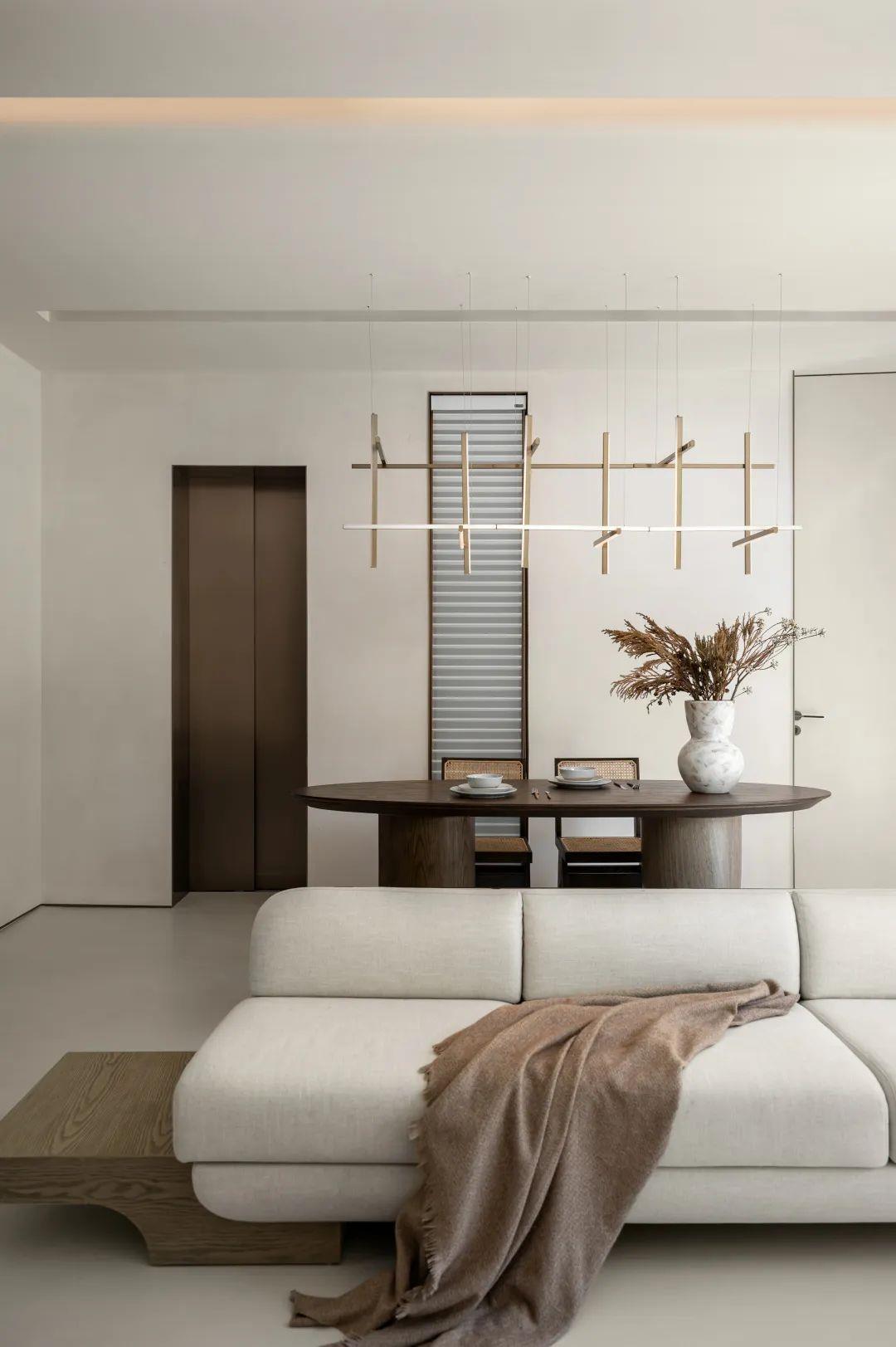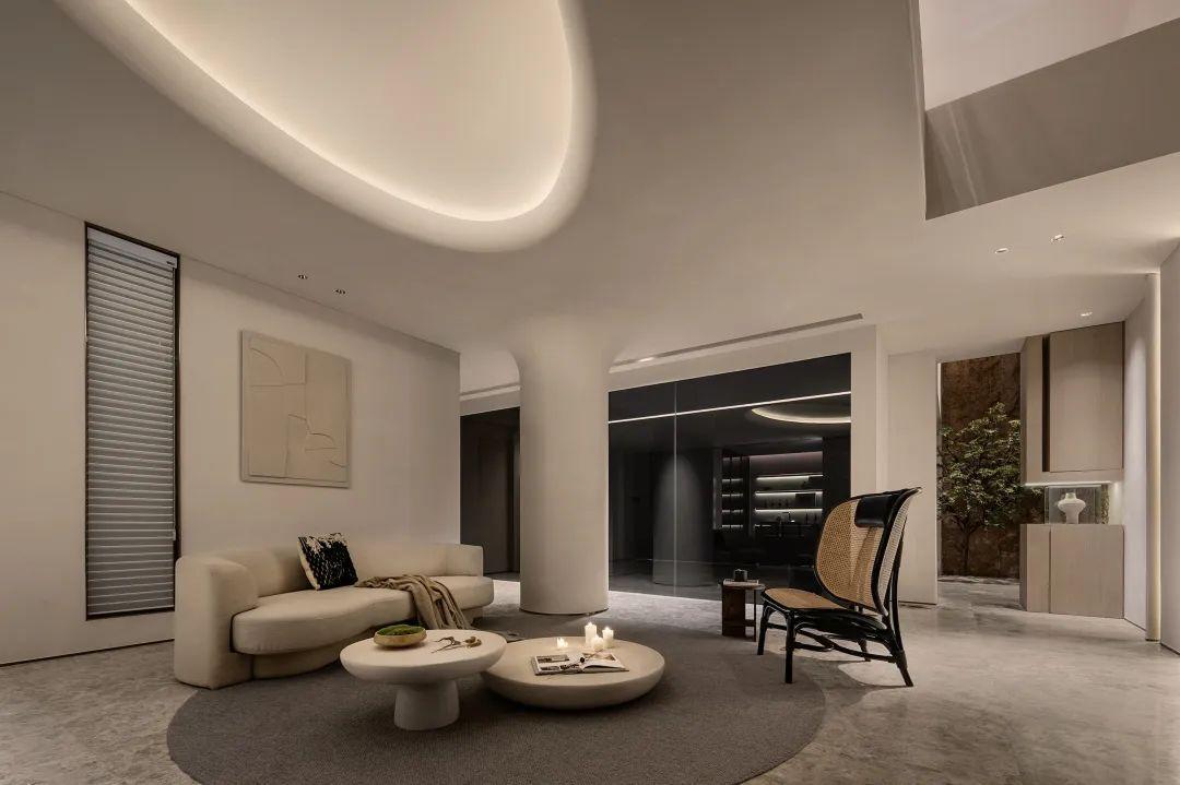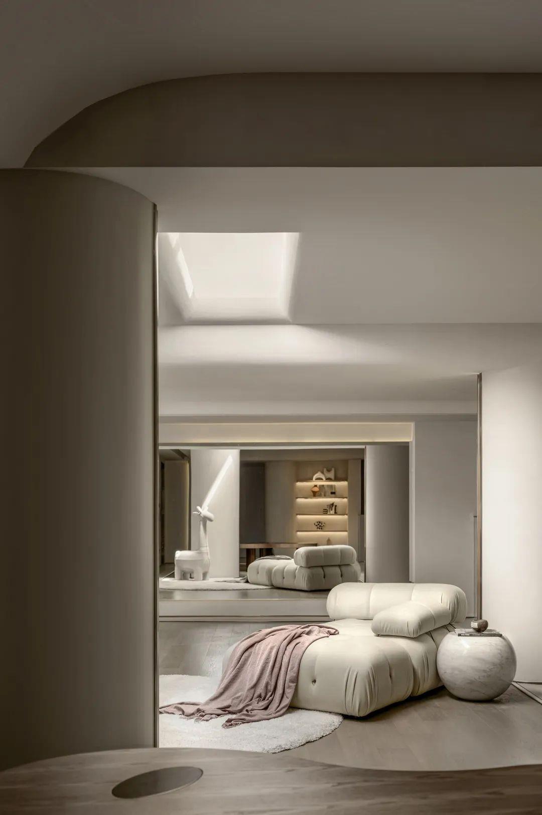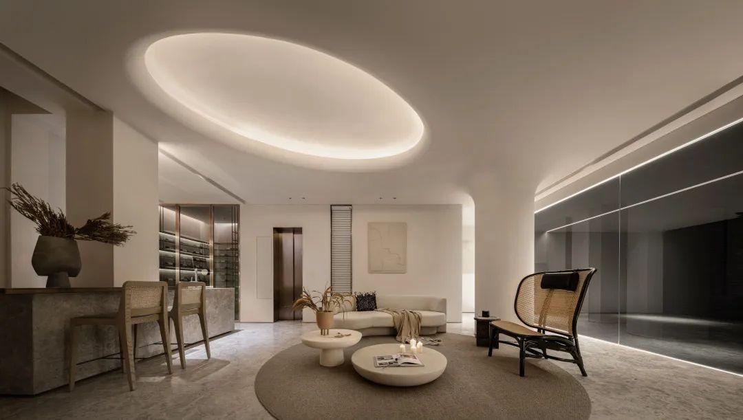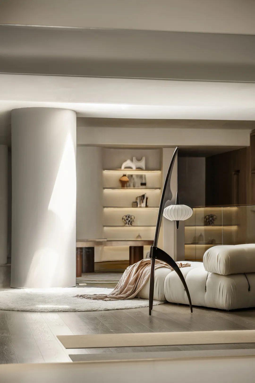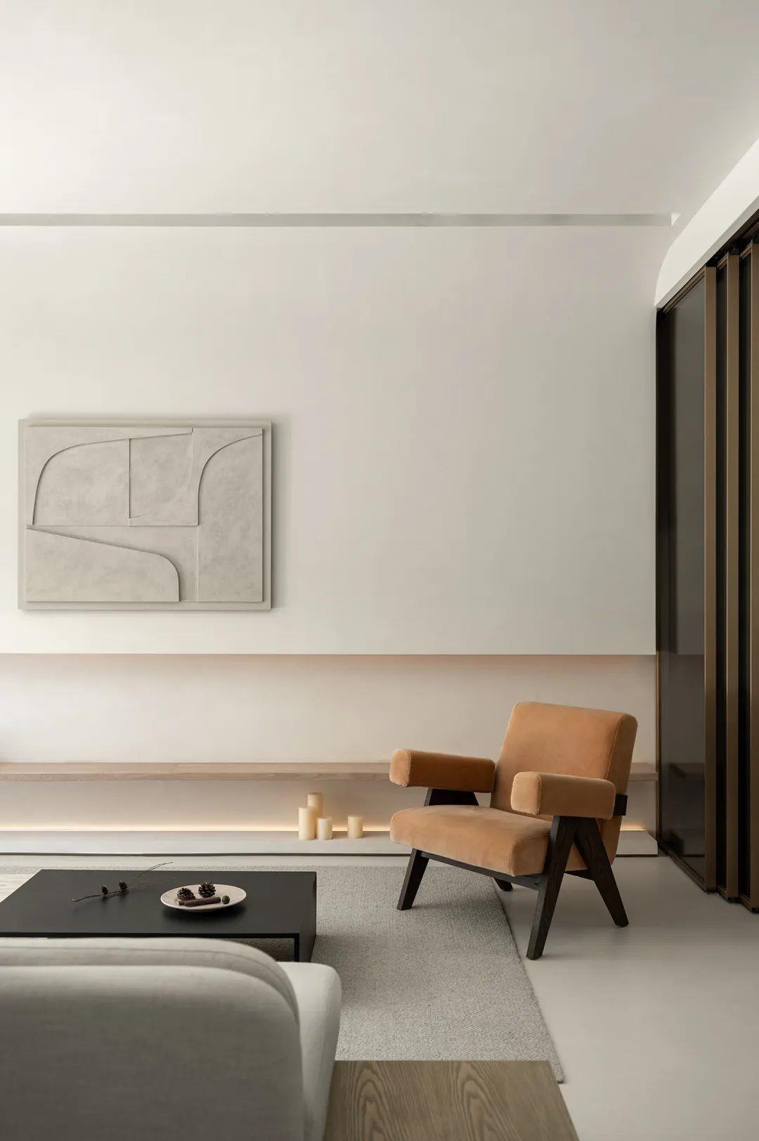 侘寂之美回归基础。保持“最低限度”的手法,开放得宜的布局呈现不对称却包容的美,以弧度张扬空间的柔美优雅,简化颜色更为和谐流畅。