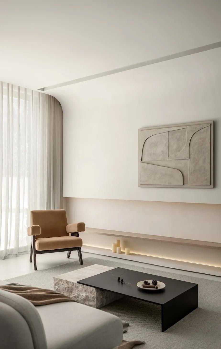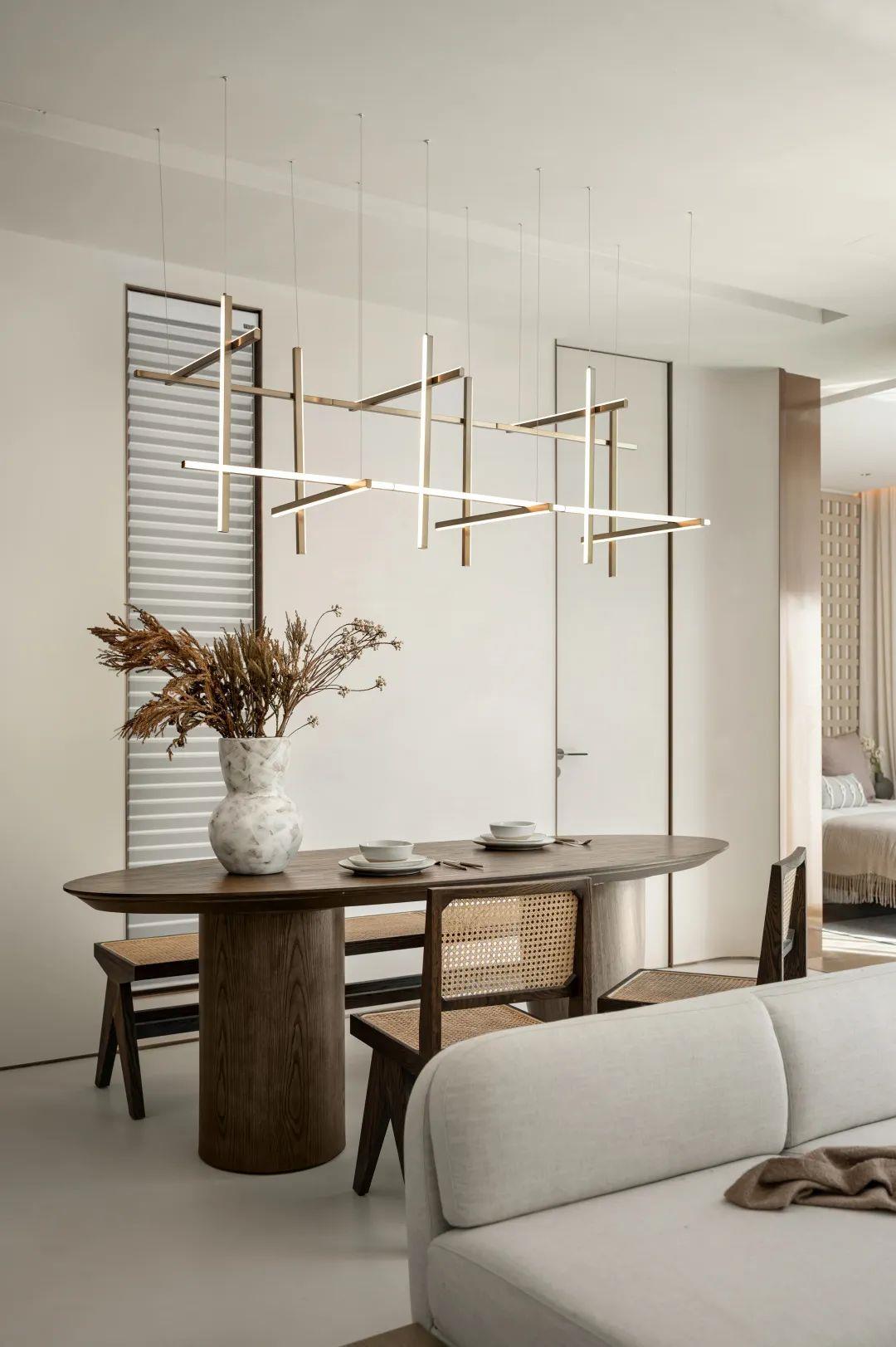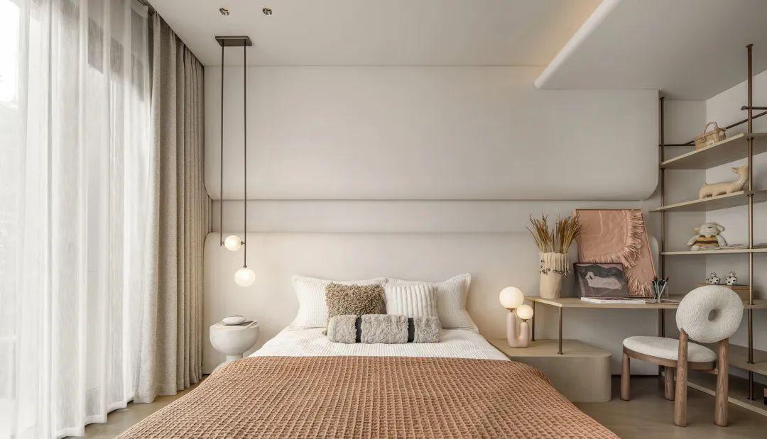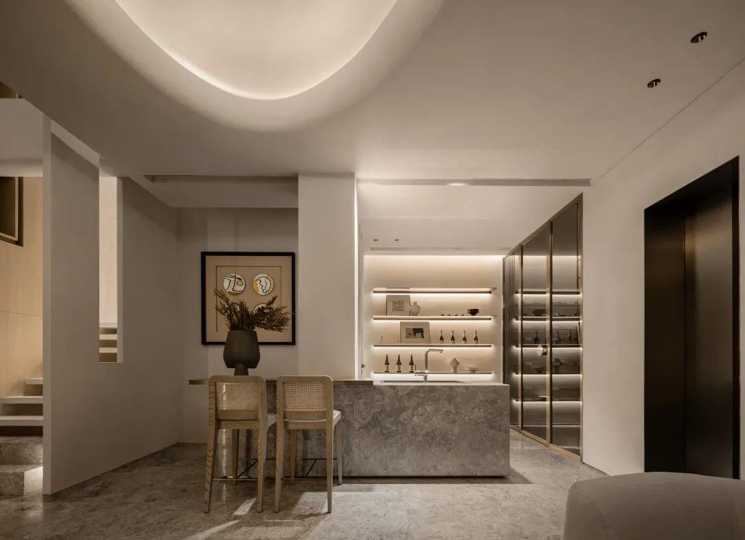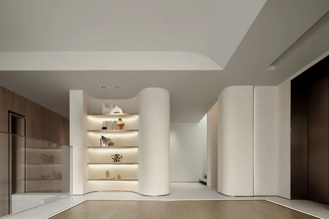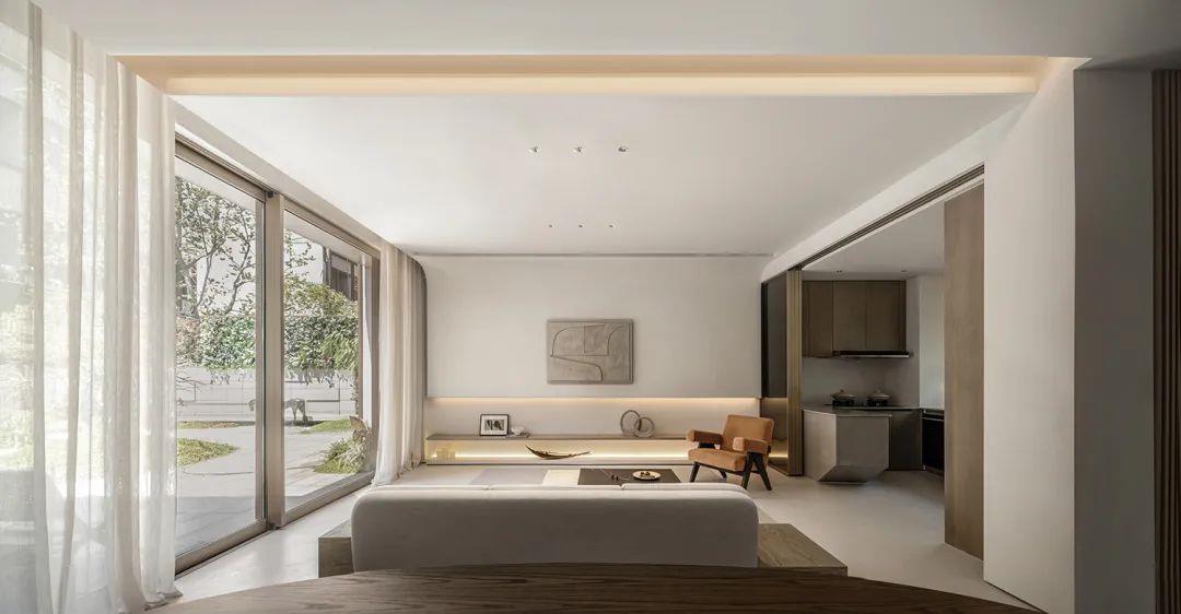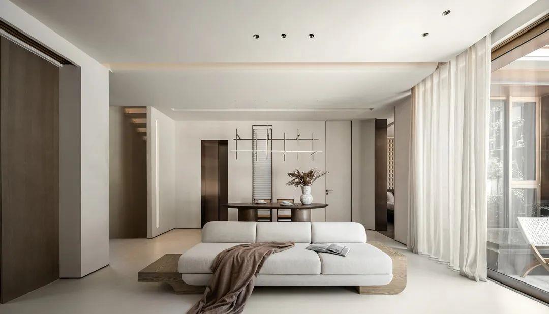 侘寂之美回归基础。保持“最低限度”的手法,开放得宜的布局呈现不对称却包容的美,以弧度张扬空间的柔美优雅,简化颜色更为和谐流畅。