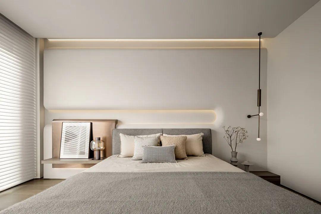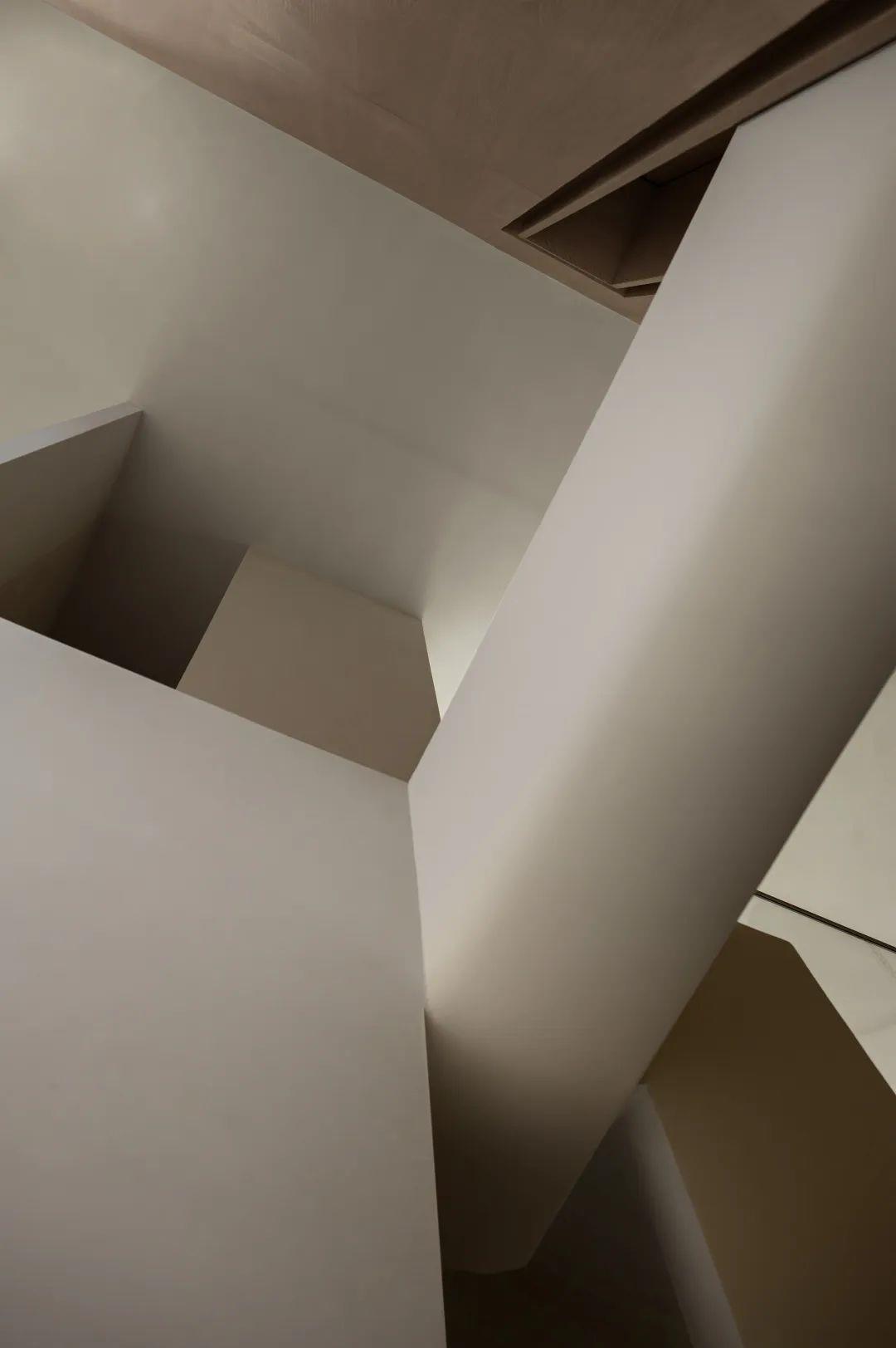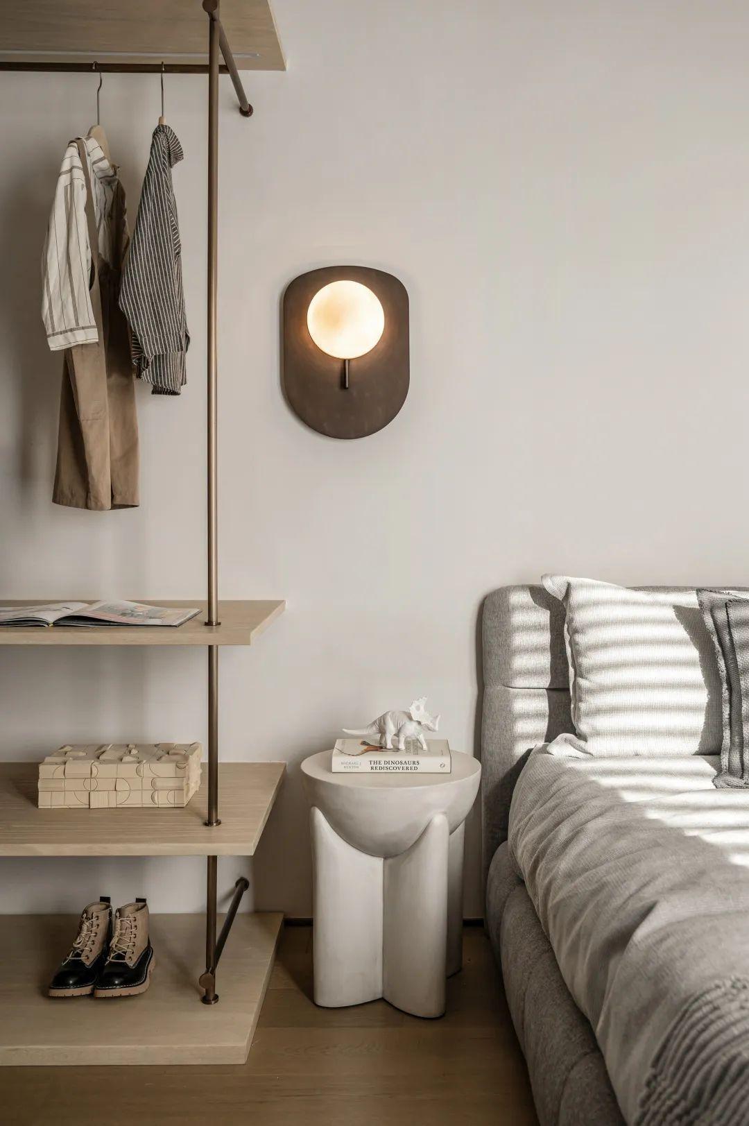 运用大面积的特殊漆,呈现自然水泥面的肌理,质地轻盈颜色柔软,冷灰系搭配空间暖黄光源,优雅不失温暖。