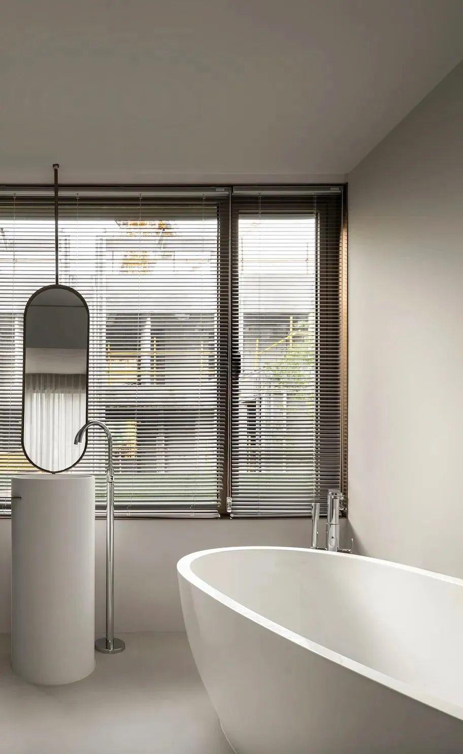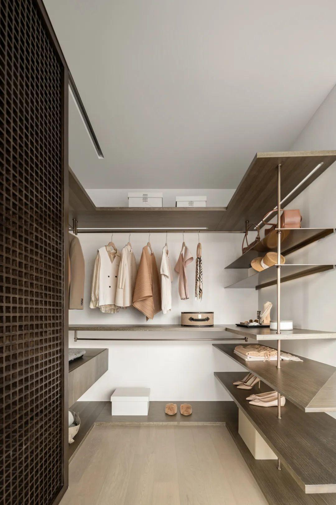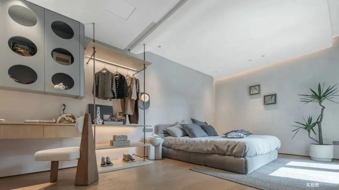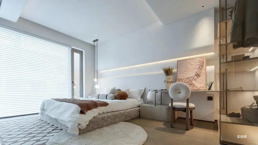 运用大面积的特殊漆,呈现自然水泥面的肌理,质地轻盈颜色柔软,冷灰系搭配空间暖黄光源,优雅不失温暖。