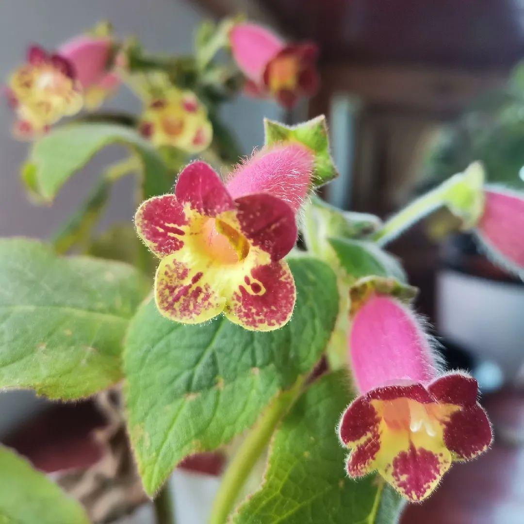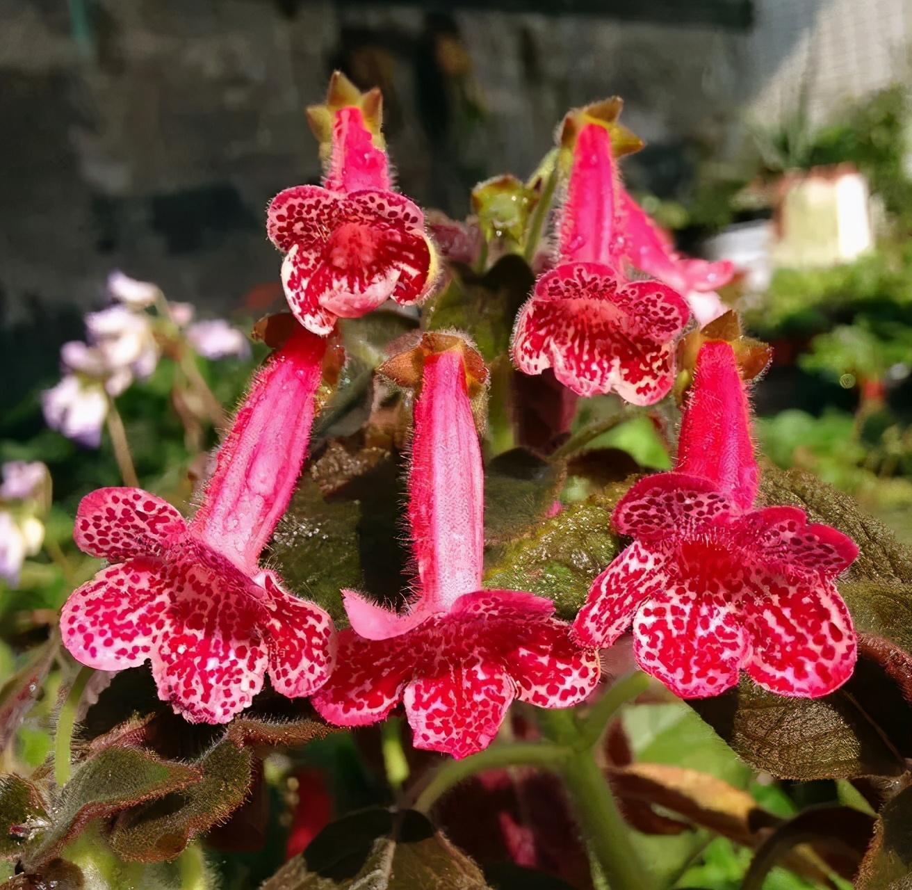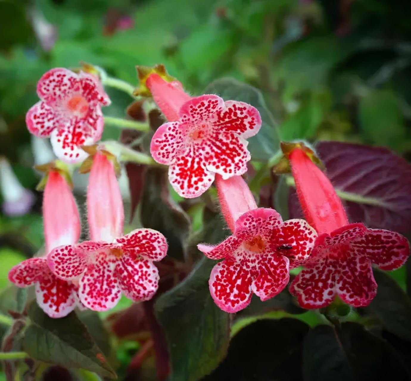 花猫原名艳斑苦苣苔,也叫花脸,因其花瓣上散布着密密麻麻的斑点而得名,它的正常花期在春秋两季,但只要温度适宜,它的很多品种即使到了冬季依然不会休眠,还会持续开花。