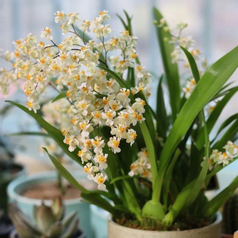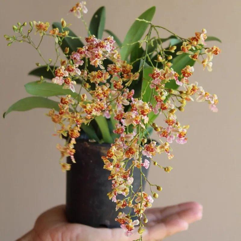 迷你文心兰每年9月份就开始冒花箭了,花量大,开花时会散发清新的香气,闻起来清新怡人不刺鼻,另外它复花也非常容易。
