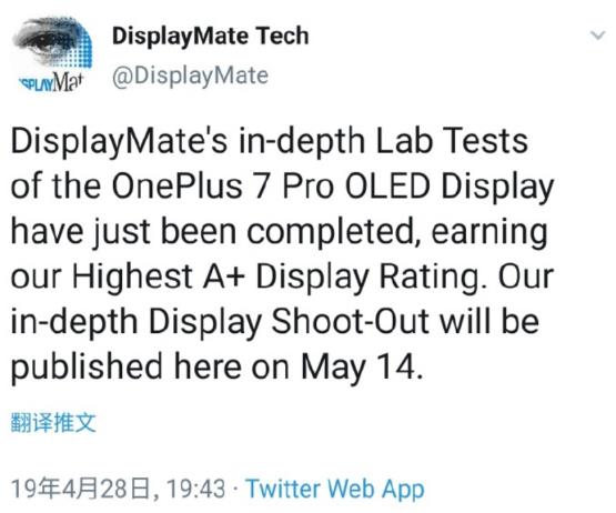 一加7 Pro此次获得DisplayMate给出的A+评级,进一步提升了新机屏幕的期待值。