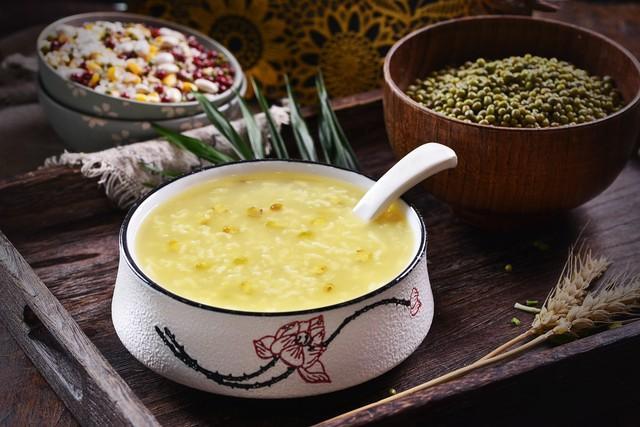 绿豆粥是一道营养丰富的粥品。将绿豆洗净后放入锅中,加水和大米或者小米一起煮成粥。也可以加入其他食材,如百合、莲子、枸杞等,增加香气。绿豆粥口感绵软,味道清淡,适合作为早餐或者夜宵食用。