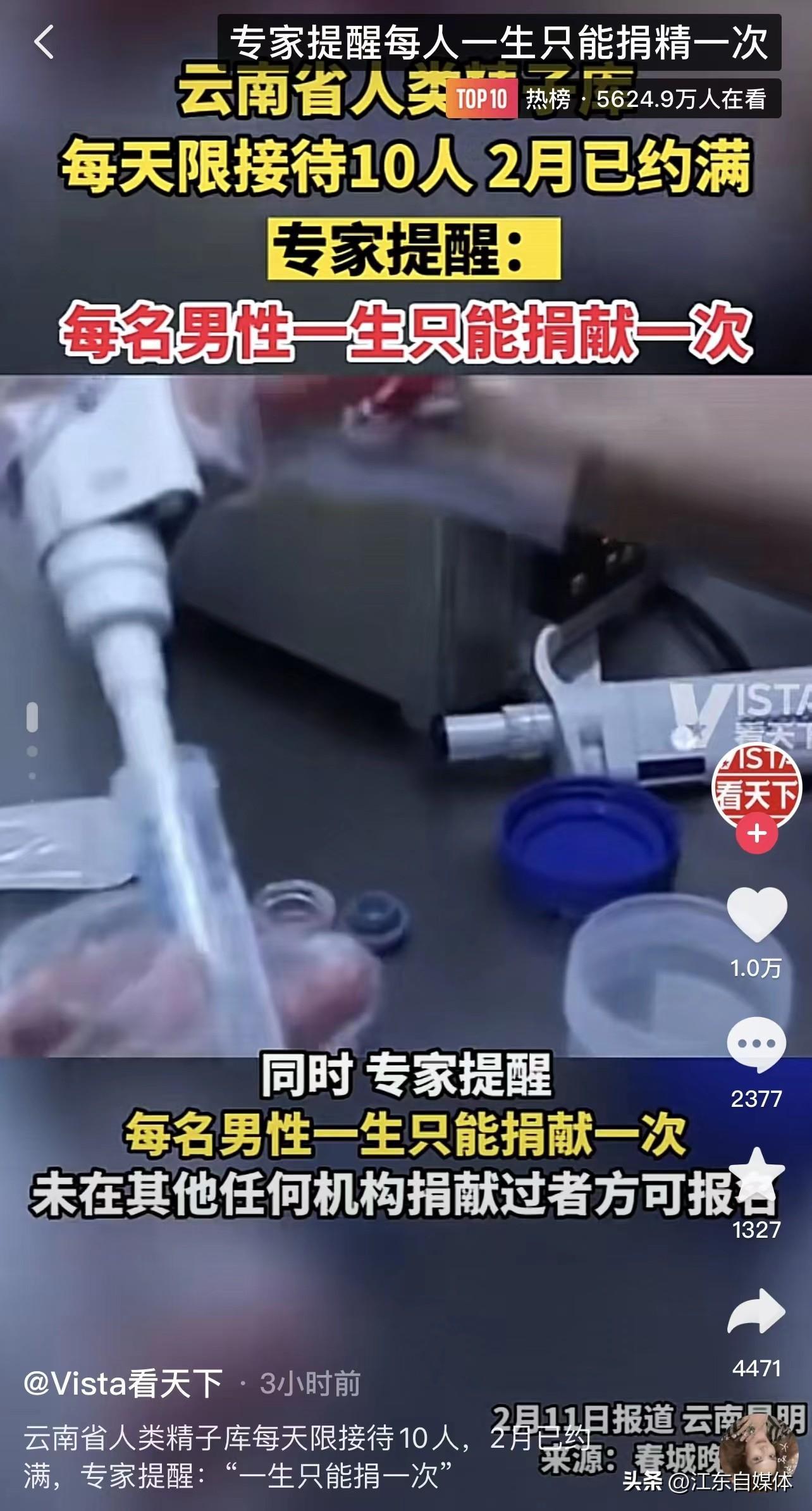首先说捐精这个事,不是现在才有的,早就有了,我做这个事的时候,都是10年前了;也不是哪个专家提出来的,不要又怪到专家头上去,最近专家的头是挺大的。