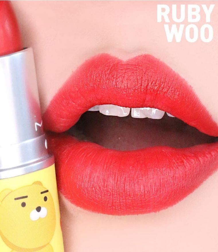#ruby woo:非常经典的哑光亮红色,也是很多女演员的爱用色,因为加入了蓝调,上嘴非常显白。