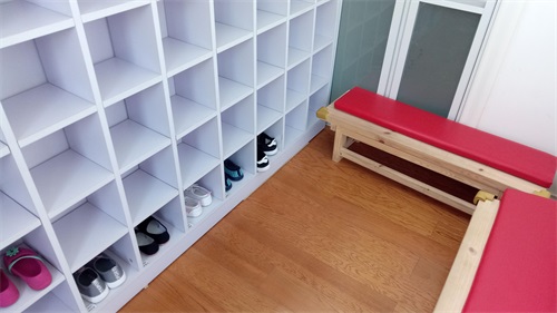 我们在门口换上鞋套,旁边是小朋友们的鞋柜。