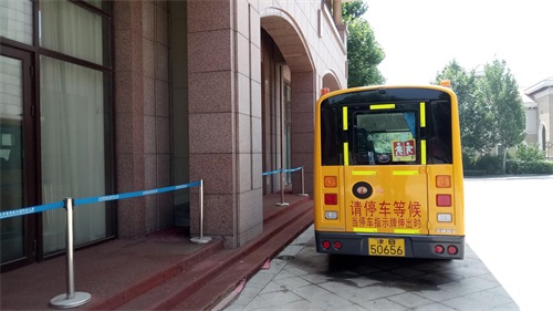 停在门口不远处的校车。