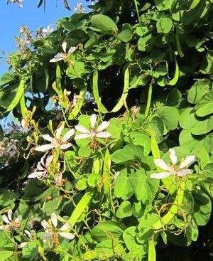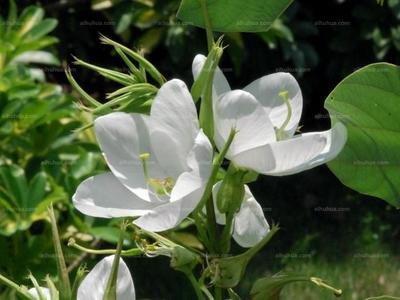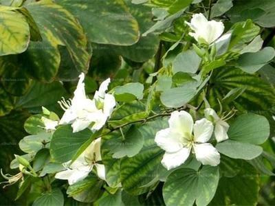 白花羊蹄甲,别名老白花皮,白花洋紫荆,羊蹄甲属,小乔木或灌木;小枝之字曲折,无毛。