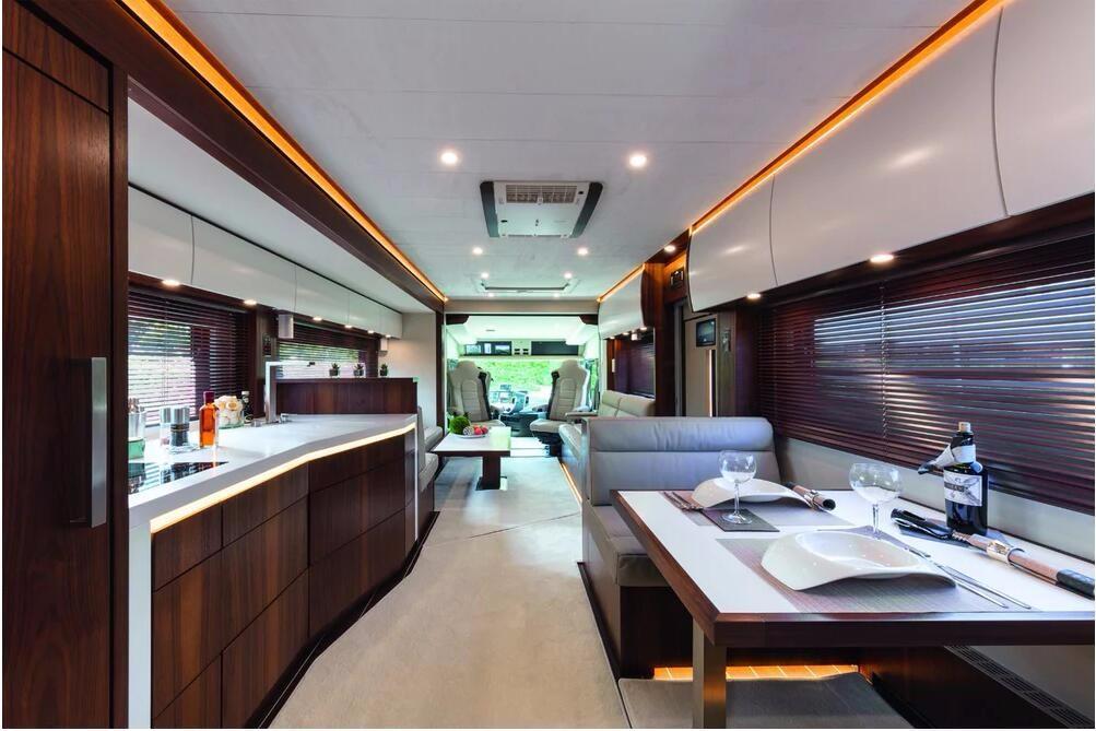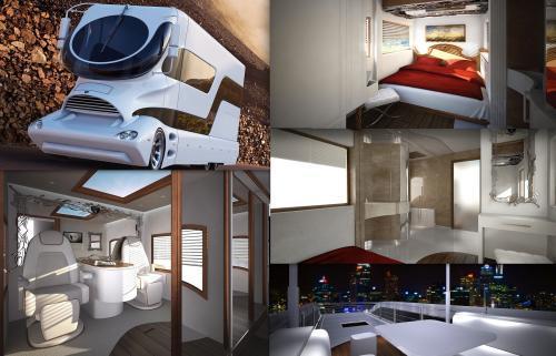 其结合汽车与房屋的概念,用大量碳纤维打造以轻量化车身,使多余重量可放置更多的家具,豪华房车内装的基本配置有室内空调、地板恒温系统、冰箱、制冰机、40寸大荧幕电视、多媒体视听娱乐、淋浴间等其他配备,车内可依个人需求加装SPA、调酒吧台、屋外空中酒廊、像是自家住宅,上不封顶,长度12公尺高度6公尺的移动皇宫