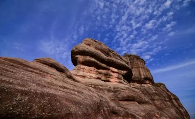 马头山属于丹霞地貌,总面积约6.51平方公里。延绵不断的红色沙砾岩,形成了顶平、身陡、麓缓的方山、石墙、石峰、石柱等奇险的地貌形态,各异的山石形成一种观赏价值很高的风景地貌!