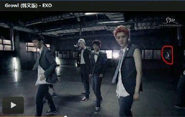这一场景是在一间被荒废了的工业高校仓库之中所拍摄的,当exo的成员卖力表演时,在鹿晗的身后的玻璃窗里竟出现了一个恐怖的鬼影!它死死的凝视着在镜头前高歌热舞的exo成员们,而且在它出现的时候,歌词正好唱到:“如果再不离开就会有危险!”