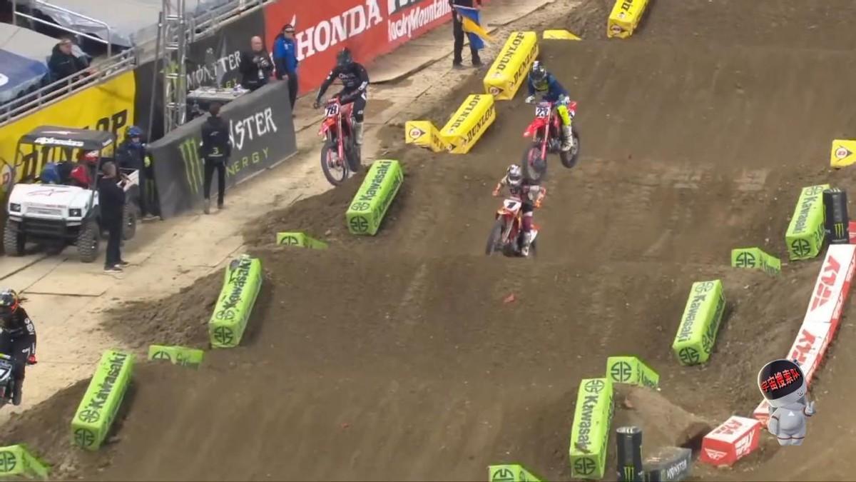 美国超级越野摩托车冠军赛,简称AMA,比赛场地是由泥土路、湍急的坡道和障碍组成的,虽然速度不足100公里/小时,不同于其他摩托车比赛,观众可以在场地全程观看,所以人气很足,十几辆摩托车一声令下飞跃起来,全程跟下饺子似的,只有不足110米的直线赛道,其余全是弯道和障碍,所以车手也只有在空中时才有放松手腕的休息机会,摩托车选手之间隐蔽的撞击,也是取得获胜机会的必要手段,给比赛增加了不确定性。