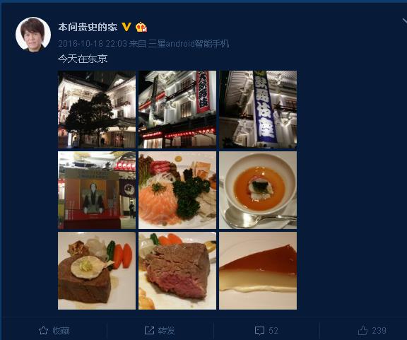本间贵史在微博,除了演讲和设计,不断的出差,最大的特色便是美食。