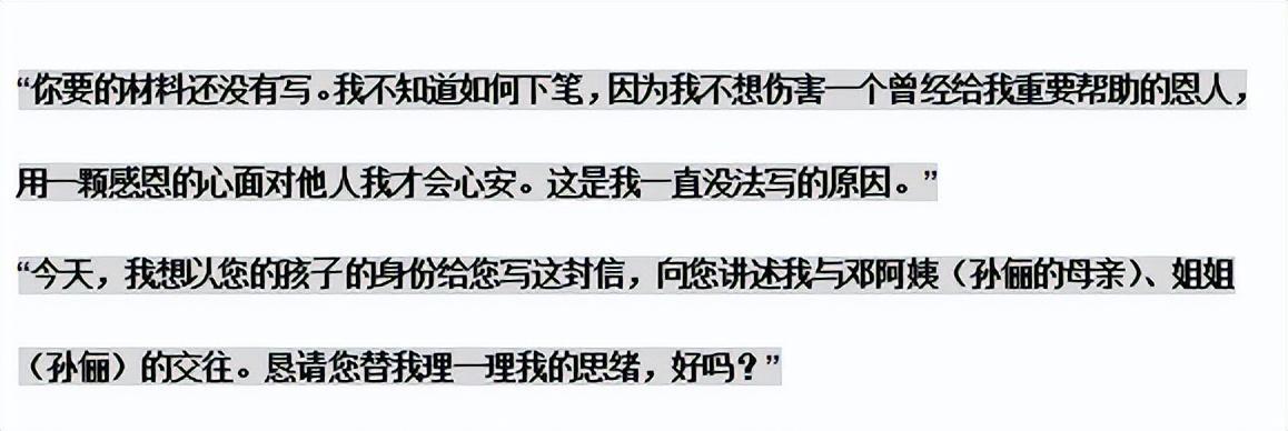 而信件中比较暧昧的一句是“邓阿姨说只要缺钱就给她们打电话。”