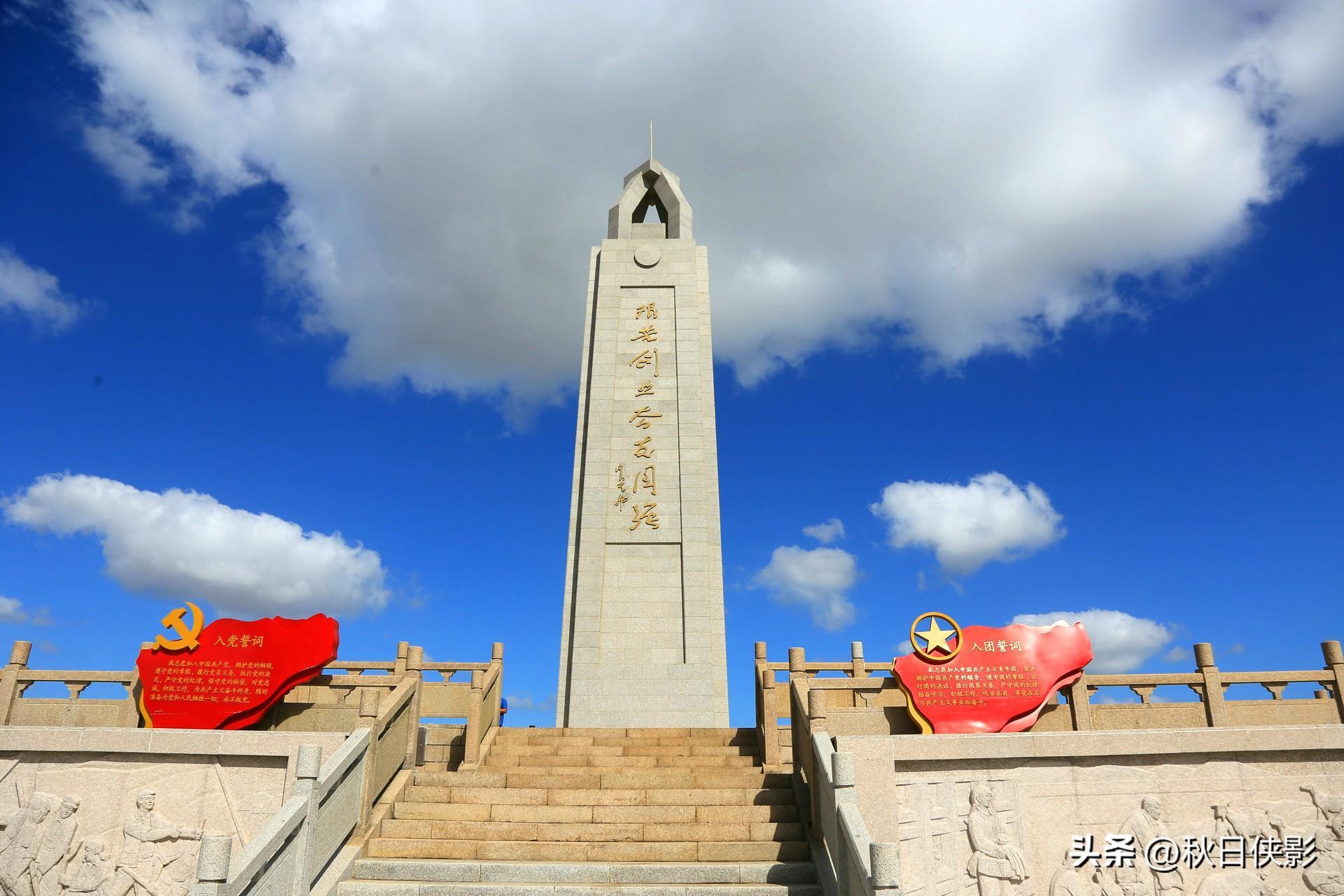 为纪念这段历史,在下大陈岛的最高处,建造了一座垦荒纪念碑,高18米,由张爱萍将军题词,此外还新建了一面绘着党徽、写着入党誓词的宣誓墙,这里因为地势高,整座海岛的景色一览无遗,也是游客必到的一处打卡点。