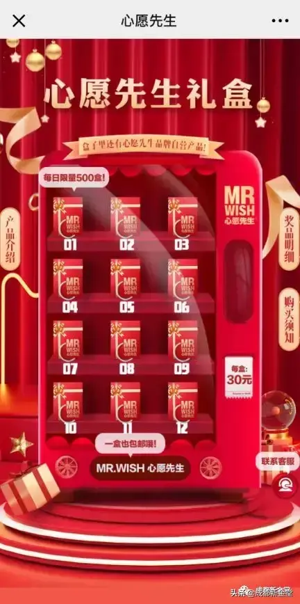 小编通过“心愿先生”所属公众号联系到该公司客服人员。据了解,一台机器有80个盒子,且自动售货机只租不卖,每台押金10000元,每月租金500元,合同期为一年,押金一年后返还。且该公司表示,保证每个盒子内的产品价格不低于30元。该公司工作人员还说,该公司营销以抖音、微博等各类较火APP为推广,再引流至线下,以此,促进线下销售量。