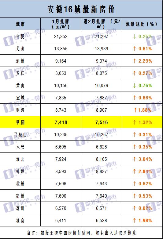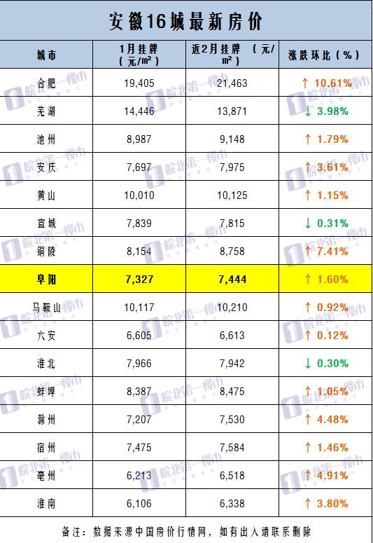 二、安徽16城最新房价,14涨2跌!阜阳房价又涨了!