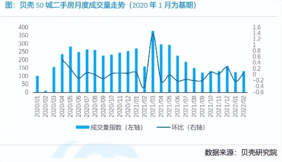 成交量:从2月7日至月底贝壳50城二手房日均成交较1月日均水平增长约40%,略超过12月日均水平约10%。