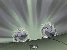 牙与忍犬赤丸叠罗汉,将赤丸变化成和自己相同的分身对付敌人。