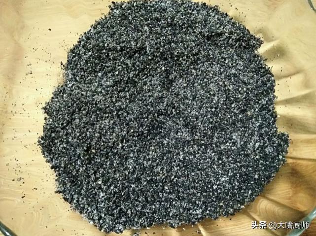 2、黑芝麻用水淘洗2遍,沥干水分,倒入锅中开小火慢慢炒,炒至芝麻发出噼里啪啦的爆裂声,表皮已经爆裂,说明炒熟了,倒进杵臼里捣成芝麻粉,也可以直接用破壁机打,根据个人口味加入适量白糖粉,搅拌均匀即可。
