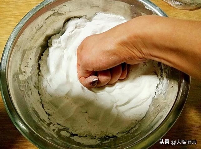 2、要用温水或热水来和面,用开水也行,这样糯米粉的黏性会非常高,无论是煮还是炸,都不容易炸裂。
