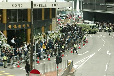 明星到外地做宣传,助手、化妆、发型师、保镖通通要带,但是张国荣没有明星架子,什么人都不带(黄百鸣评价)2003年4月8日下午,亲友们护送张国荣灵柩到火葬场,张国荣的遗体被火化