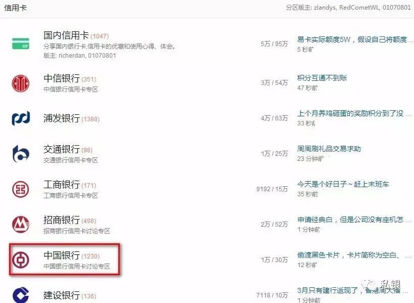 看看今天我爱卡论坛(bbs.51credit.com,国内最著名也是最早的信用卡论坛,卡界权威董峥董老师做首席运营,不要被李鬼51混淆了)上的讨论,中行板块是异常地火爆,反超了平日活跃得多的招行、工行、浦发。