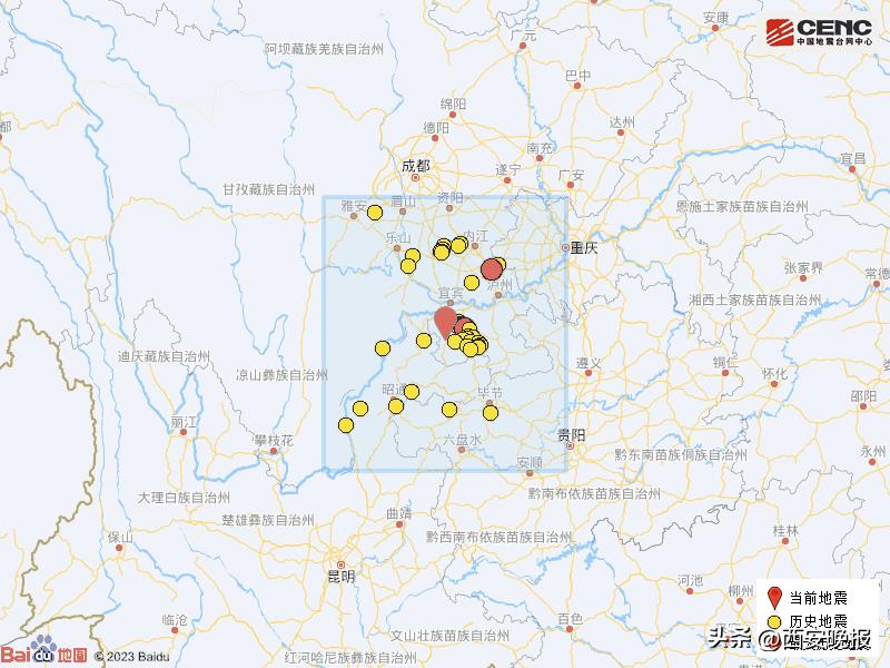 历史地震:根据中国地震台网速报目录,震中周边200公里内近5年来发生3级以上地震共316次,最大地震分别是2021年9月16日在四川泸州市泸县发生的6.0级地震(距离本次震中124公里)和2019年6月17日在四川宜宾市长宁县发生的6.0级地震(距离本次震中33公里),按震级大小前50次历史地震分布如图。
