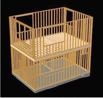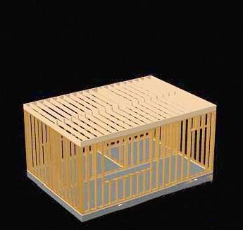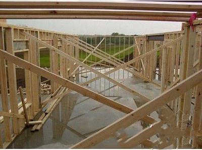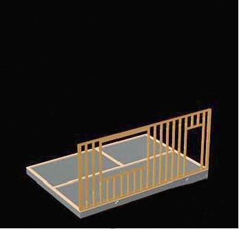 3.布设木剪力墙的木圈梁,用金属连接件将这些木条牢靠的固定在混凝土地基上。