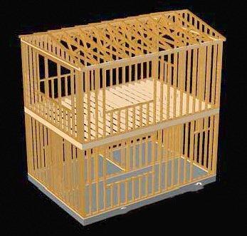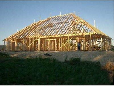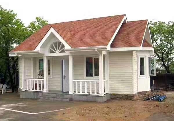 然后,墙体立柱之间塞上保温材料,把木板固定到墙体立柱、楼面梁、屋顶桁架上,墙面、楼板和屋顶就都有了。剩下的就是内外装修、屋面防水、水电暖煤气,这个跟砖房就都差不多了。成品图如下: