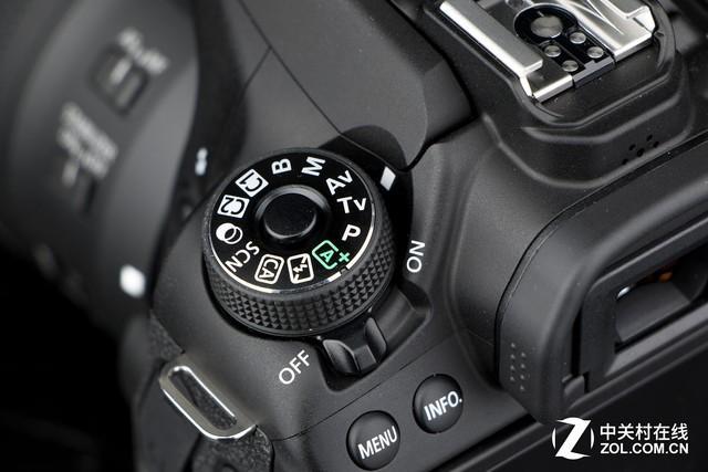 其他方面,机身顶部设计依然是倾斜肩屏。不过这并不影响数字的显示,这块肩屏仍然能够完整的显示大部分的参数信息。左侧的模式拨轮上,增加了滤镜和C1/C2两个用户自定义模式。