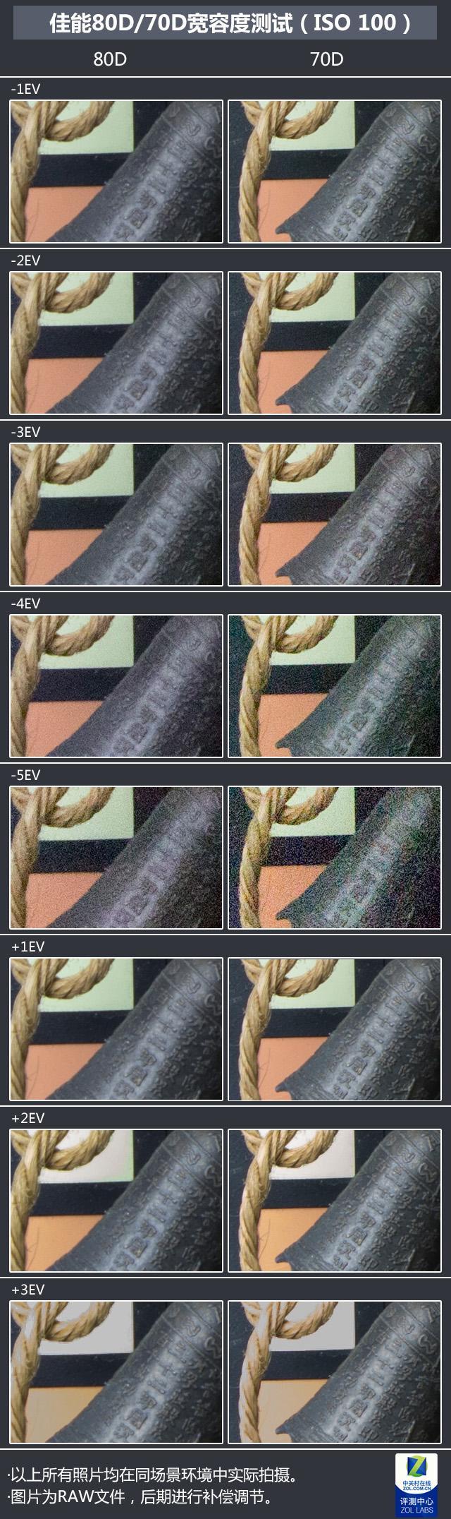 佳能80D/70D宽容度对比(ISO 100)