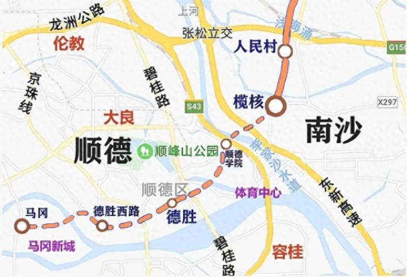其将在南沙榄核设站,然后西延入顺德后设置顺德学院、德胜、德胜西路、马冈4个站。