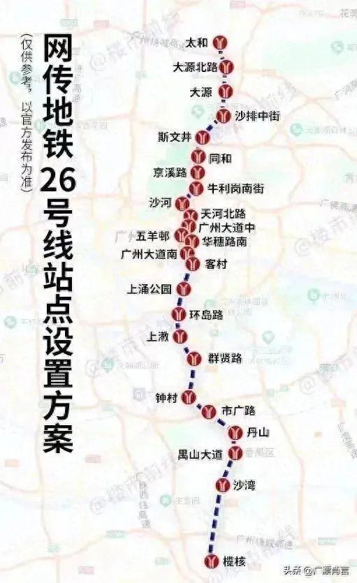 其中26号线一期是3号线的平行线,由太和至榄核,全长59公里,预留继续往南延伸(至顺德)的条件。