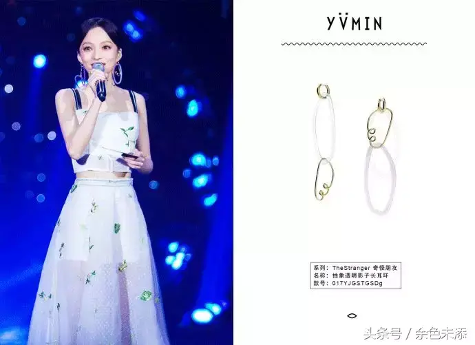 张韶涵在《歌手》里也频繁戴了耳环,每一款都非常有特点!其中一款不对称耳环属于尤目TheStranger奇怪朋友系列,抽象透明影子长耳环。