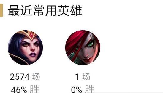 最后就是来说说这位玩家对于妖姬的执念,从图片中我们可以看到这位玩家除了2500+的妖姬场次以外,也就仅仅使用过一次卡特。